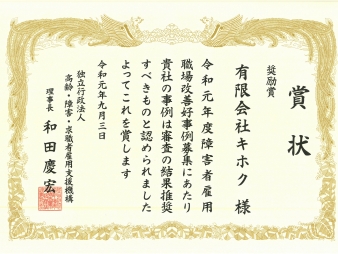 (独)高齢障害・求職者雇用支援機構理事長奨励賞