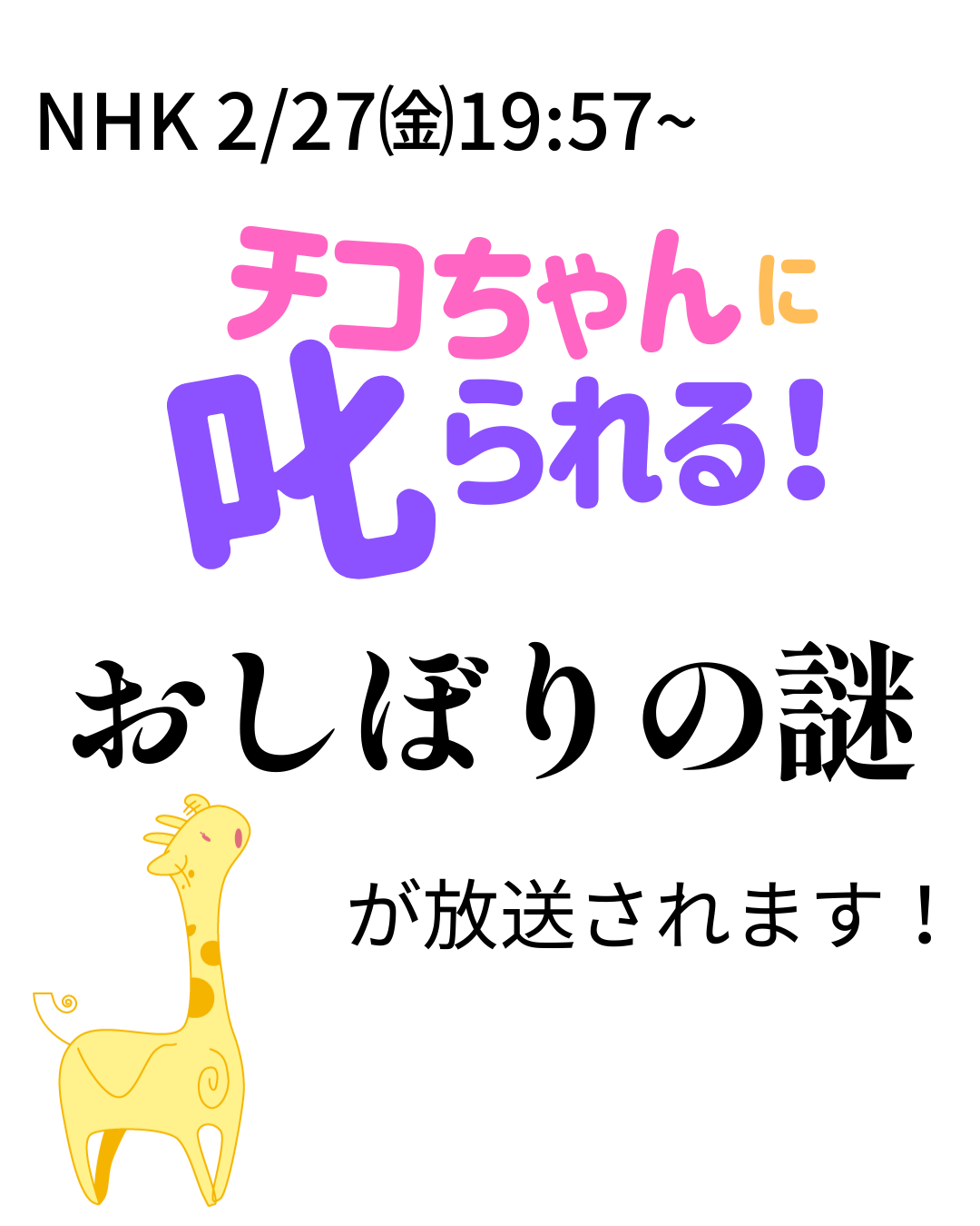 2/27㈮19:57~のNHK「チコちゃんに叱られる!」で