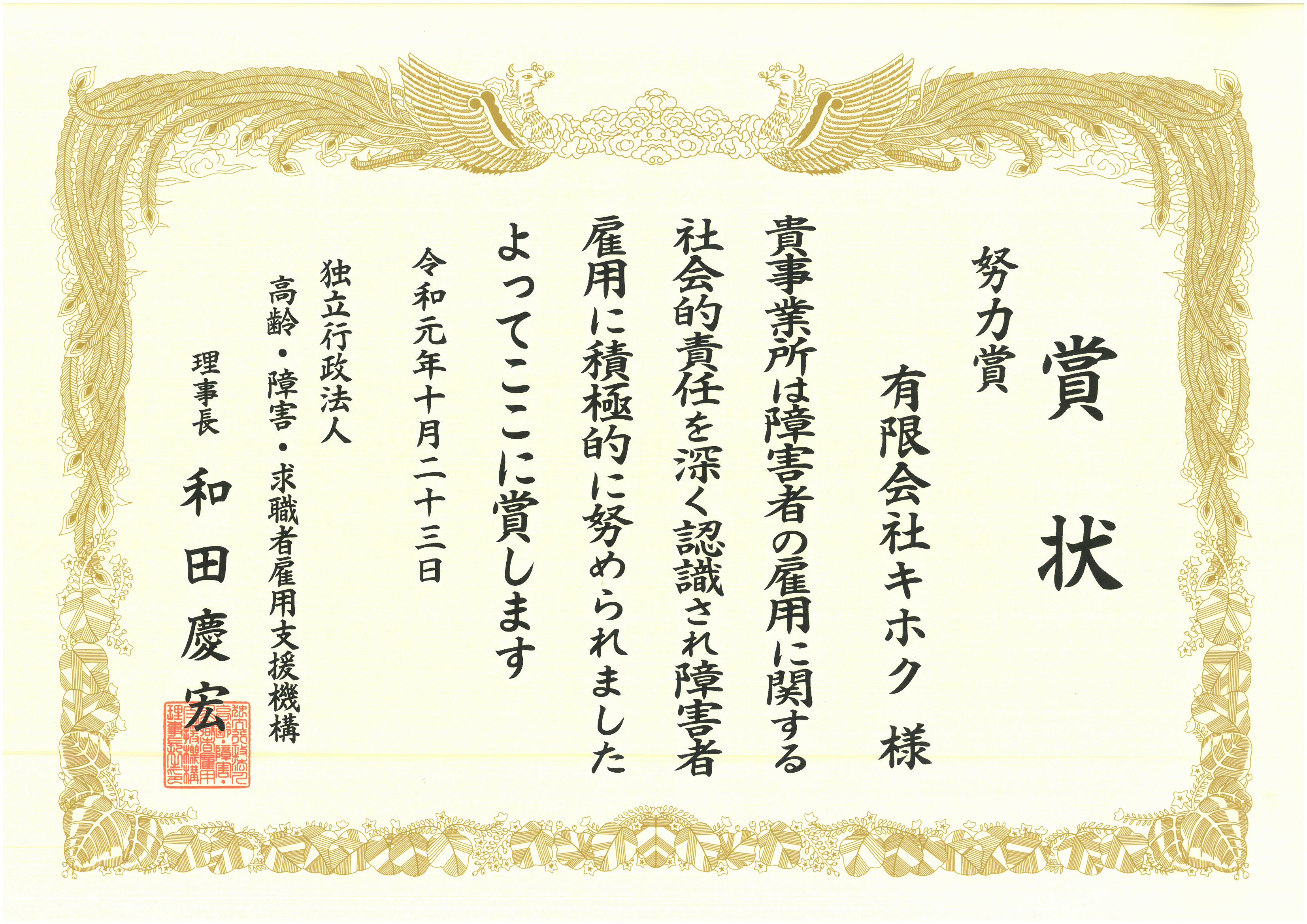 (独)高齢・障害・求職者雇用支援機構理事長表彰
